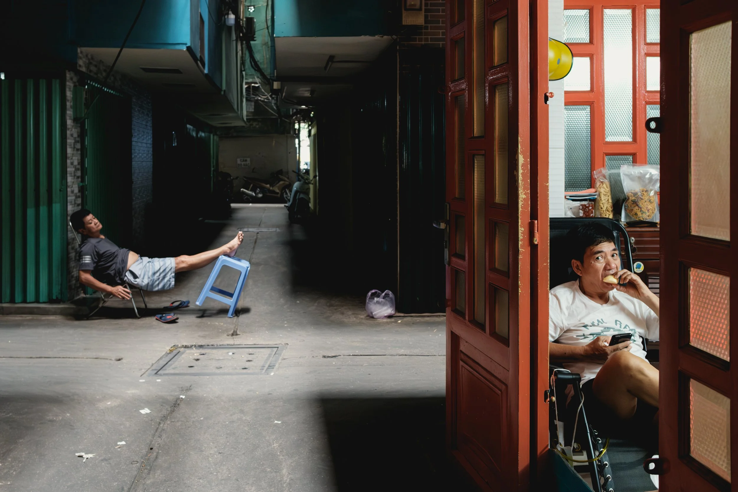 As a general rule, rain in Saigon never lasts long. If it does, we’ll either find cover and keep shooting or take a break with a drink to review photos and talk about photography.