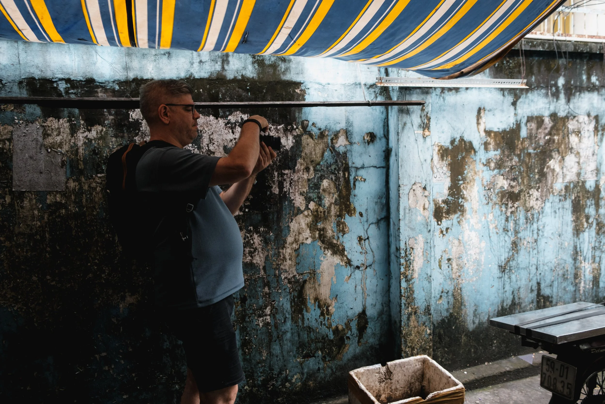 We immersed ourselves in a neighborhood market, took photos from inside apartment buildings, and met local residents; the experience was very interesting and enriching. Adrien takes every opportunity to share a new shooting technique, a composition idea, or a way to play with the available light.